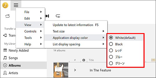(Valikko) näytön vasemmassa yläkulmassa ja valitse sitten [Sovelluksen näytön väri] seuraavista: [Valkoinen], [Musta], [Punainen], [Sininen] tai [Vihreä].
