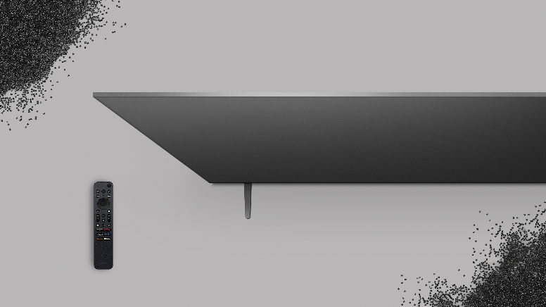 BRAVIA on onnistunut lisäämään kierrätysmateriaalien käyttöä merkittävästi materiaalien kehittämisestä suunnitteluun ja säilyttämään samalla laadukkaan viimeistelyn. SORPLAS-muovia™[13], Sonyn kehittämää kierrätysmuovia, on käytetty takakannessa, joka on television suurin pinta-ala, ja noin 65 prosenttia[14] käytetystä muovista on kierrätysmateriaalia. Myös kompakti, ladattava Eco Remote -kaukosäädin on valmistettu noin 79,7-prosenttisesti kierrätysmuovista[15].