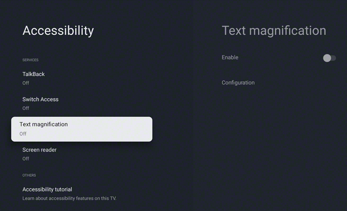 Talkback-näytönlukutoiminnon avulla käyttäjä voi tarkistaa ohjelmaluettelot ja määrittää television asetukset katsomatta ruutua. Myös ruudulla näytettävää tekstikokoa voi suurentaa. Lisäksi BRAVIA TV:n HDMI- ja S-Center-liittimissä olevat tuntopisteet vastaavat BRAVIA Theatre -tuotteista löytyviä pisteitä, mikä helpottaa porttien paikantamista ja liittämistä ja sujuvoittaa käyttöönottoa.