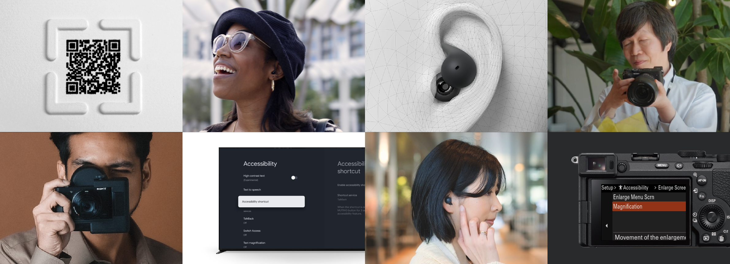 Digitaalisten kuvankäsittelytuotteiden avulla pyrimme osaltaan laajentamaan näkövammaisten henkilöiden luovia mahdollisuuksia. Valituissa kameroissa, kuten Alpha 7 IV , on näytönlukutoiminto, joka lukee valikot ja videotoistonäytöt ääneen ja auttaa käyttäjiä kameran käytössä. Käytettävissä on valikon zoomausominaisuuksia sekä mahdollisuus asettaa erilaisia helppokäyttöisiä pikanäppäimiä. HDMI-ulostulo on tuettu niille, jotka tarvitsevat suuremman näytön. AI-avusteisen automaattitarkennuksen ansiosta kamera tarkentaa valittuun kohdetyyppiin, jolloin käyttäjät voivat keskittyä laajempien kuvien ottamiseen. GP-VPT2BT-kuvauskahva langattomalla kauko-ohjaimella mahdollistaa yhden käden käytön, ja siinä on sisäänrakennettu pieni jalusta, joka takaa vakauden ilman käsiä.